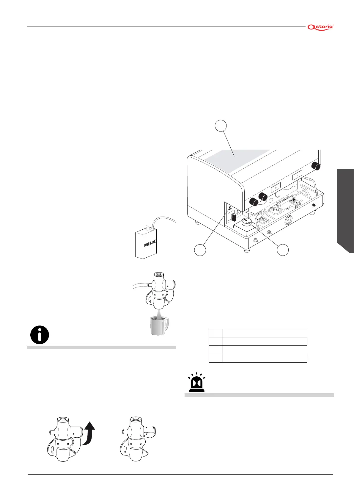 Pour obtenir du lait chaud sans mousse, soulever l'ailette du dispositif à