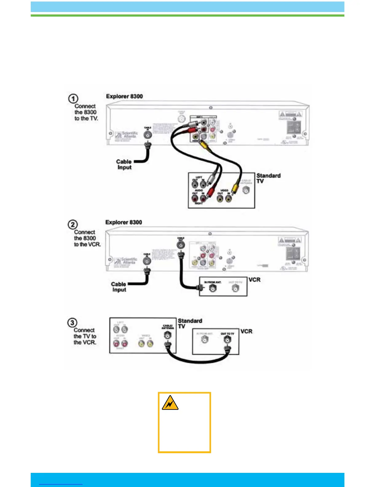 Astound Concord - Wiring Diagrams - Explorer Model 8300 Connections; Connecting DVR 8300 to TV; Connecting DVR 8300 to VCR; Connecting TV to VCR