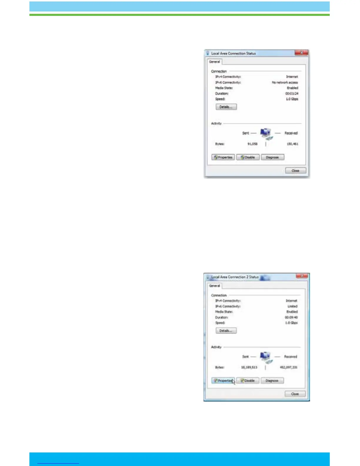 • On the “Local Area Connection Status” window