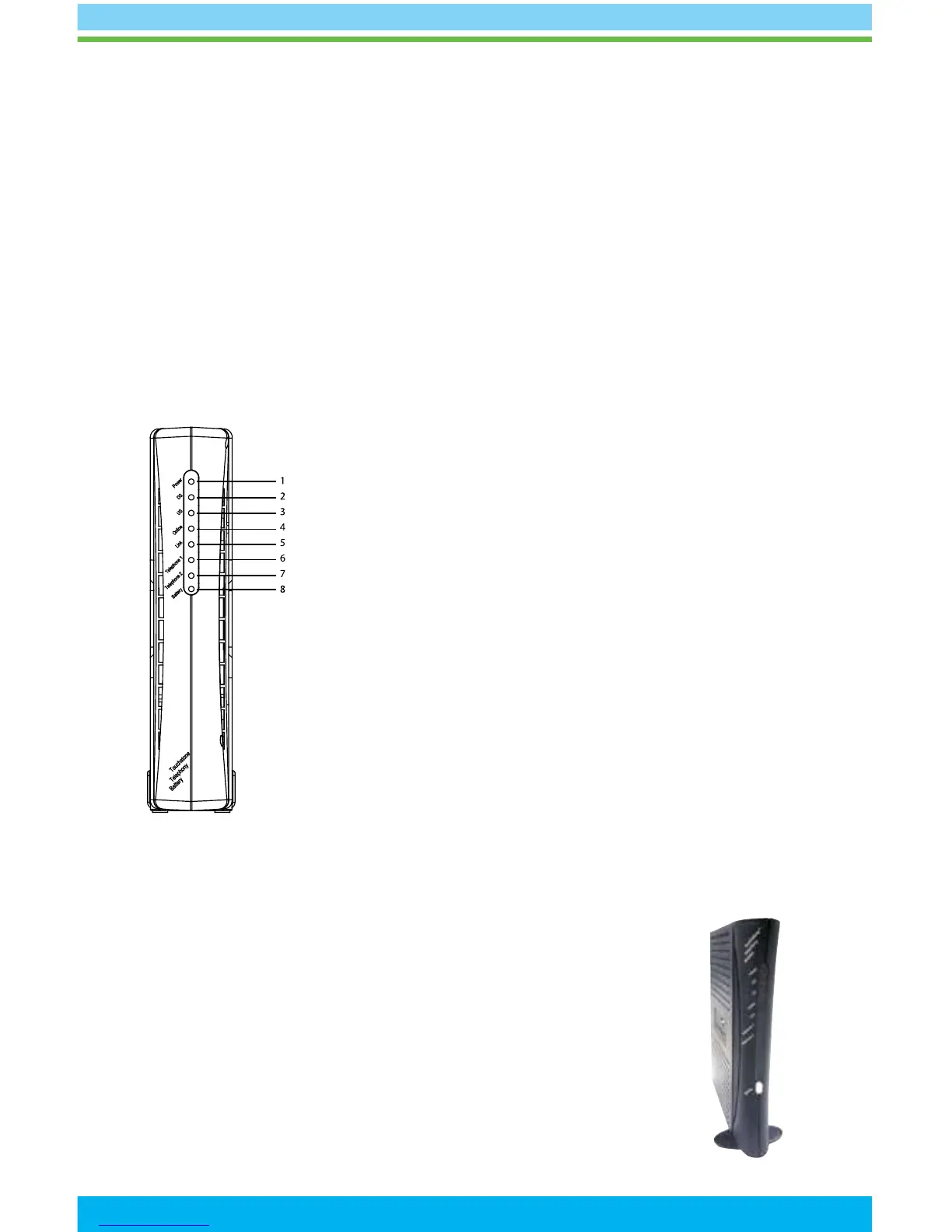 • Standby Mode – Modem is offline and in standby indicated by a blinking