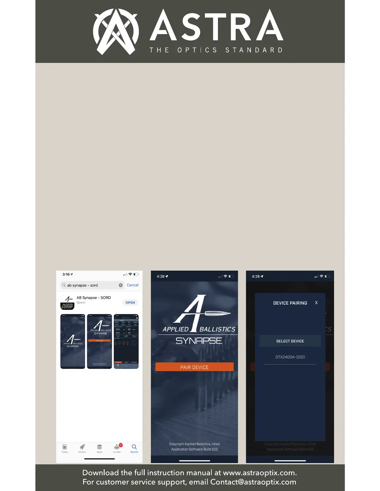Astra OTX2400A - Quick Start App Integration; Set up rangefinder with Applied Ballistics Phone App