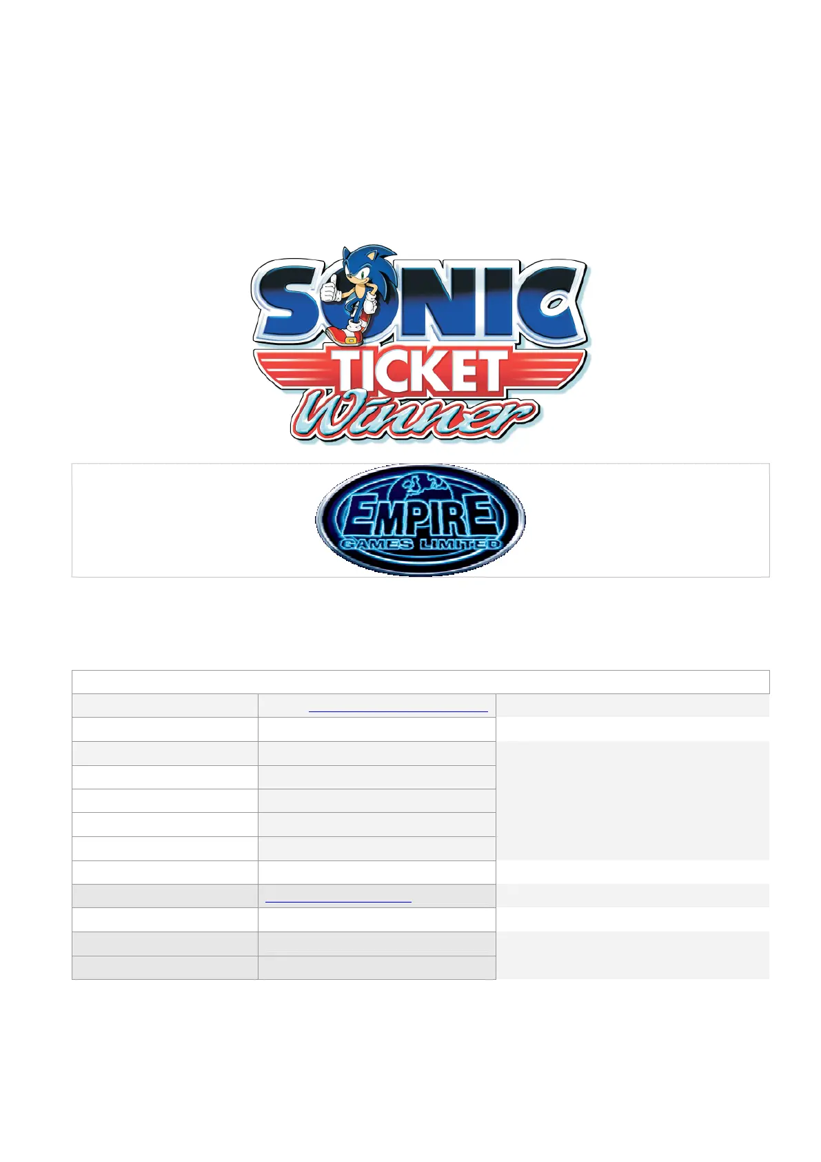 Astra Games Limited Machine Service & Maintenance Manual Sonic Ticket Winner