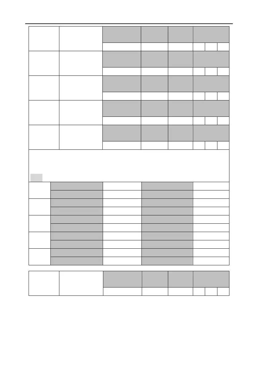Note: The default values indicate the functions applied in position mode.