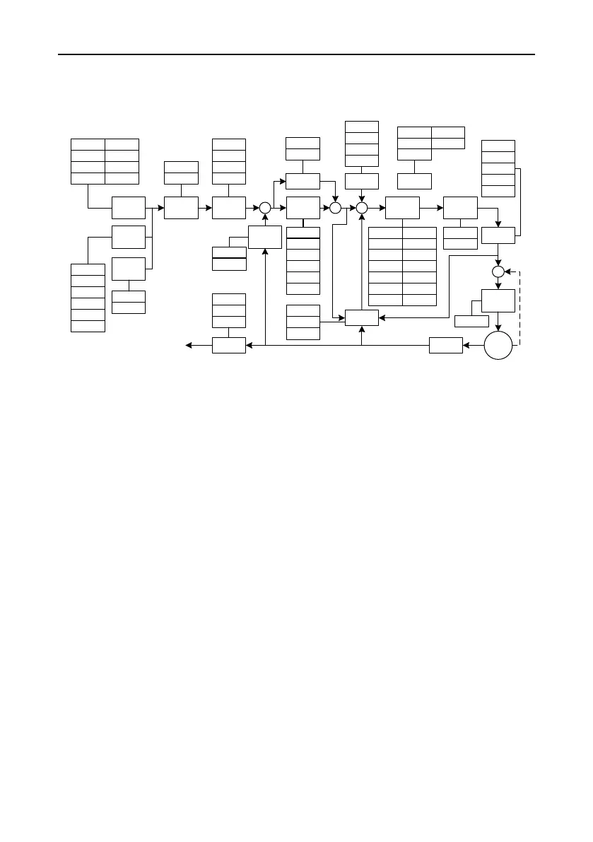 The following block diagram illustrates speed control for AS64 servo drive and lists the adjustable
