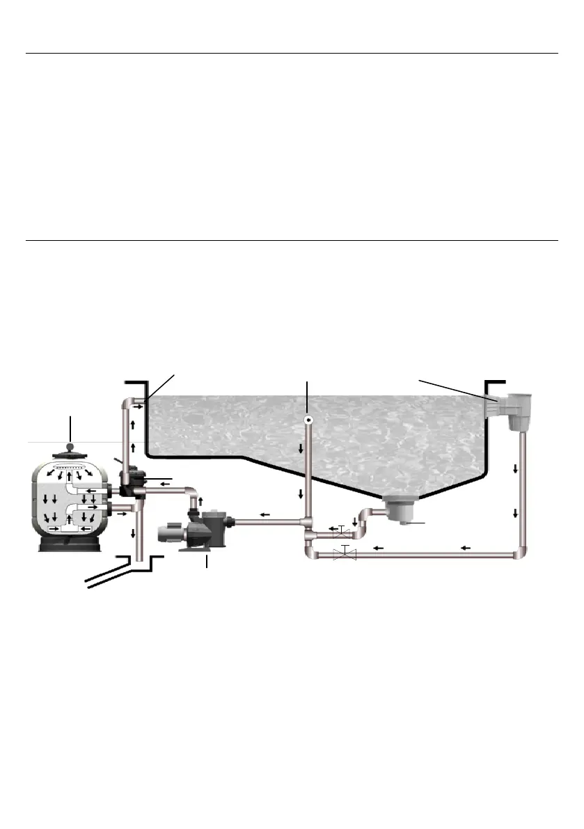 Ralo de fundo e aos Skimmers para proporcionar desta maneira uma renovação total da água da piscina.