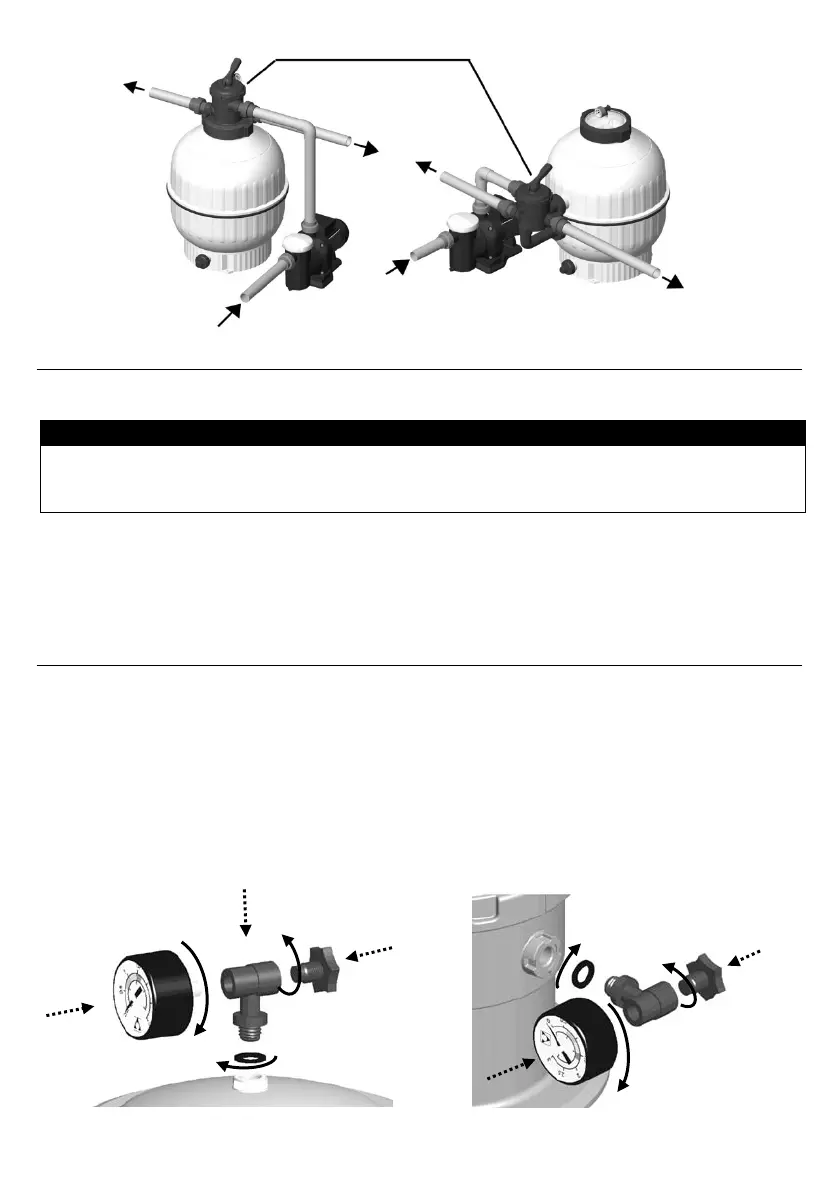 3.-No caso de um filtro com válvula lateral, instale a válvula seletora no filtro, procurando que as juntas entre a válvula e o