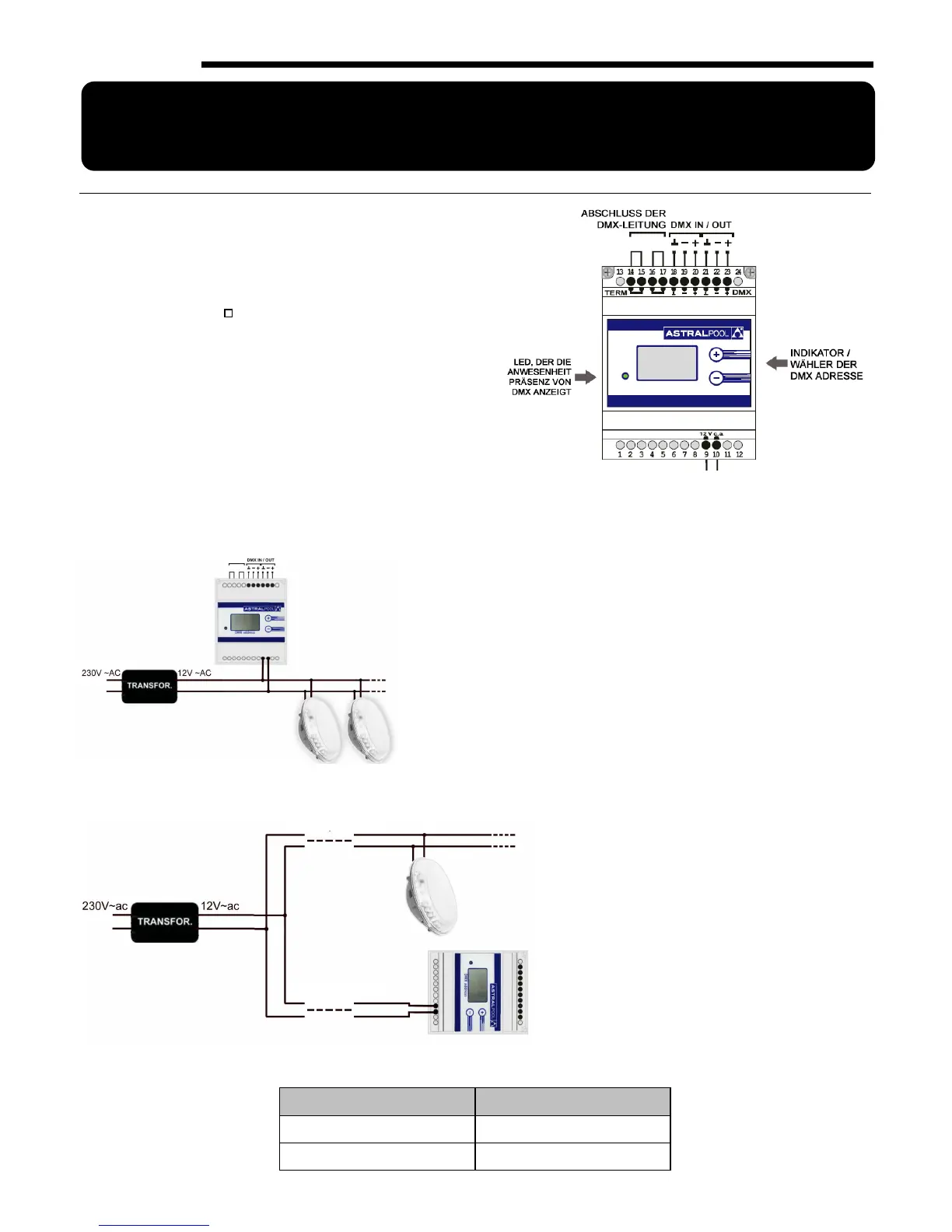 notwendig, die Leitung mit 12 V~AC zum DMX-