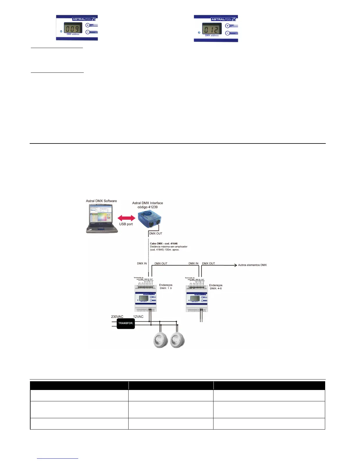 - Controlador DMX: Astral DMX (código 41329), inclui software e interface.