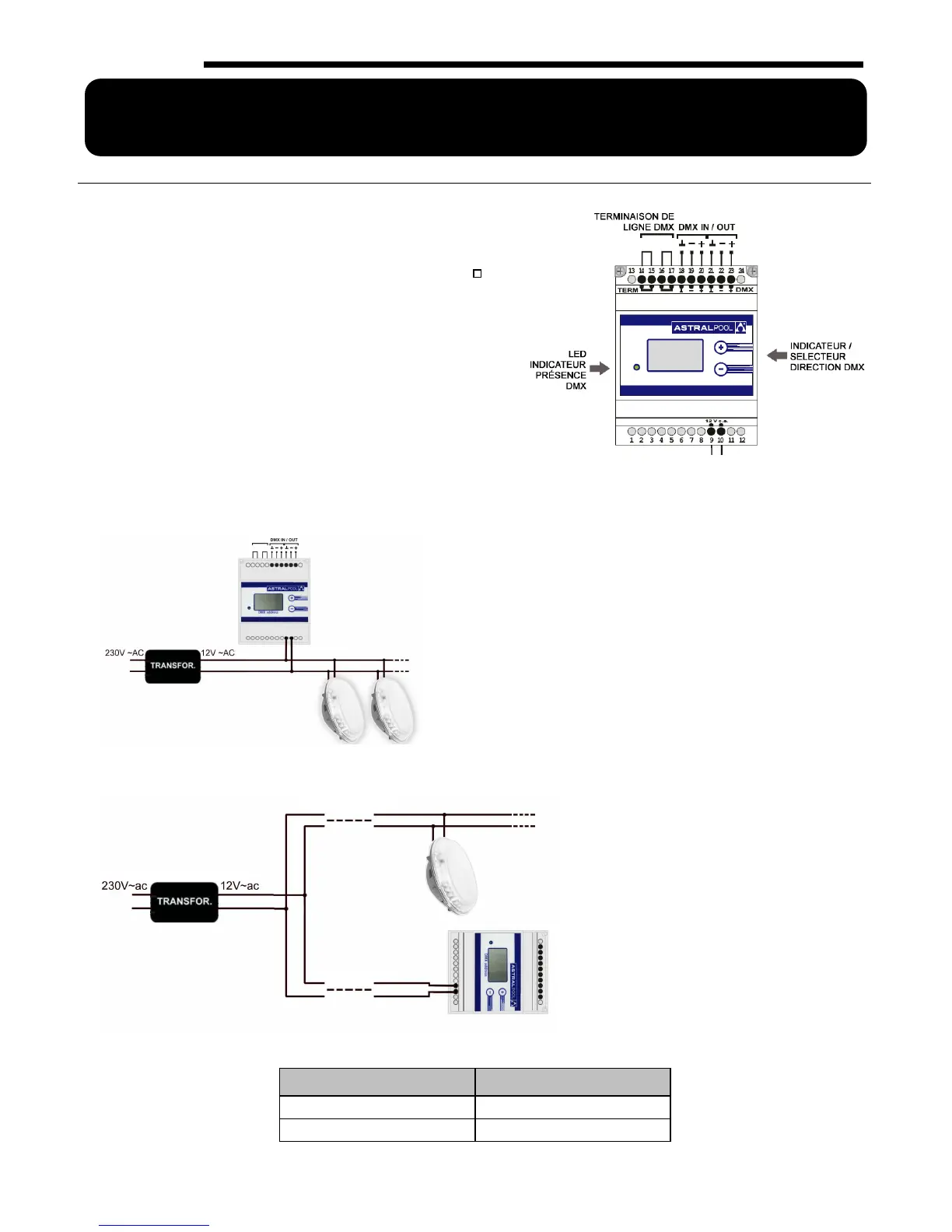Le modulateur DMX est raccordé au secondaire du transformateur de
