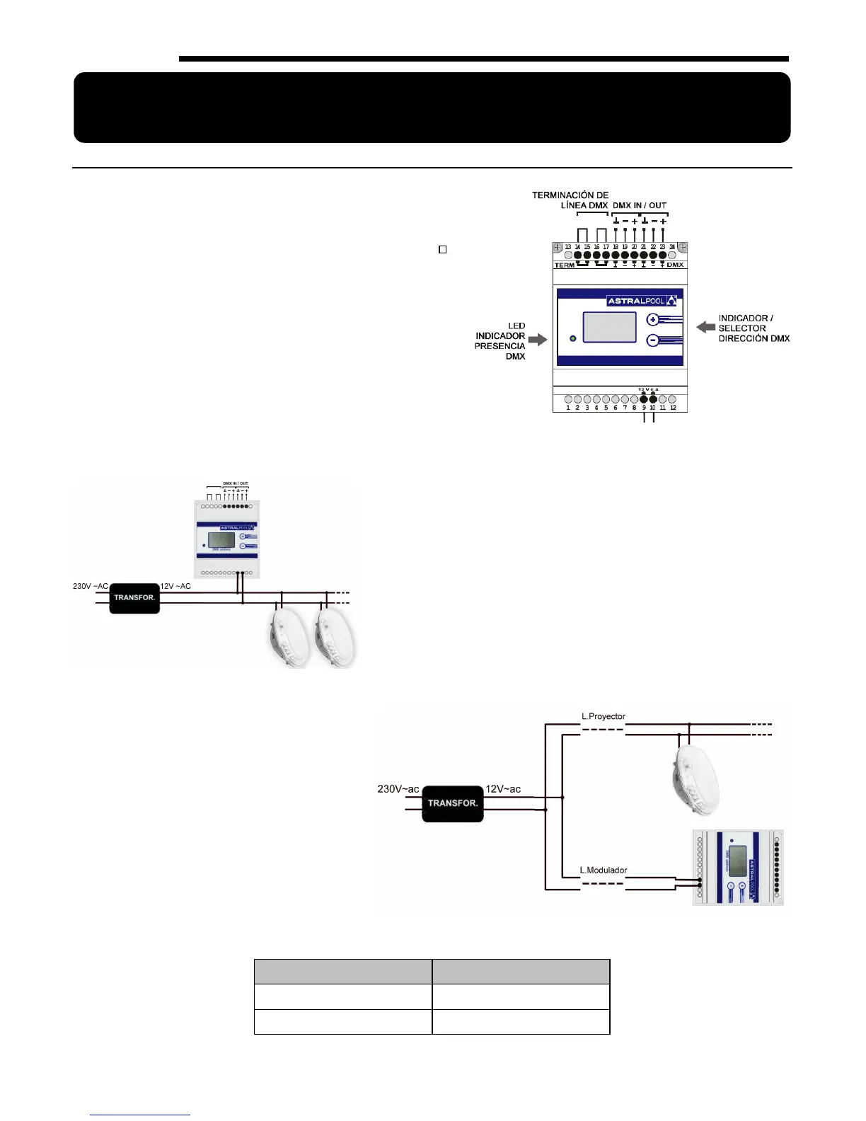 Evitar instalar las líneas de alimentación de 12V~AC de las lámparas y