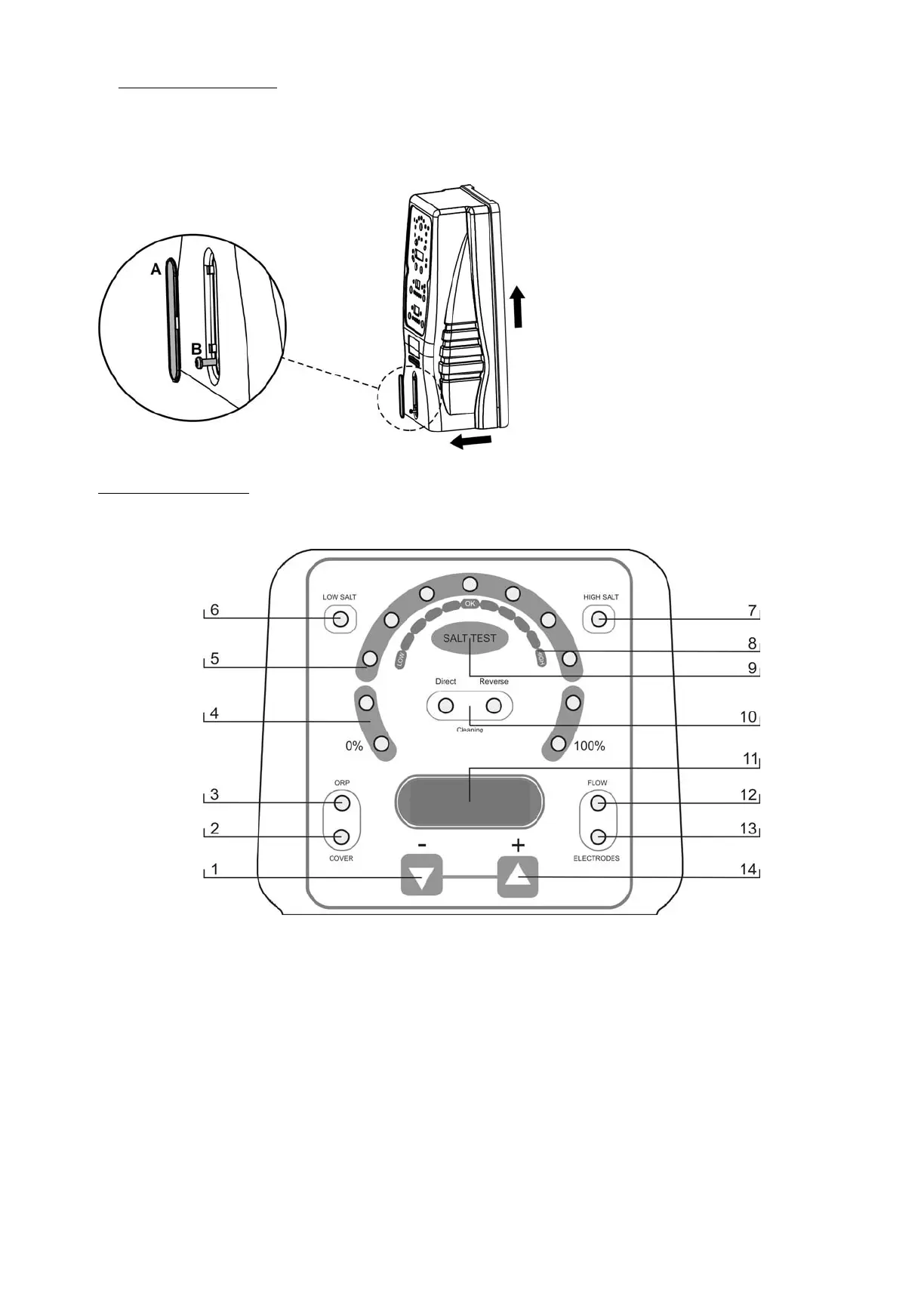 Les systèmes d’Électrolyse de Sel AstralPool Chlore sont équipés d’un tableau de commande situé sur la partie avant (Fig. 12).