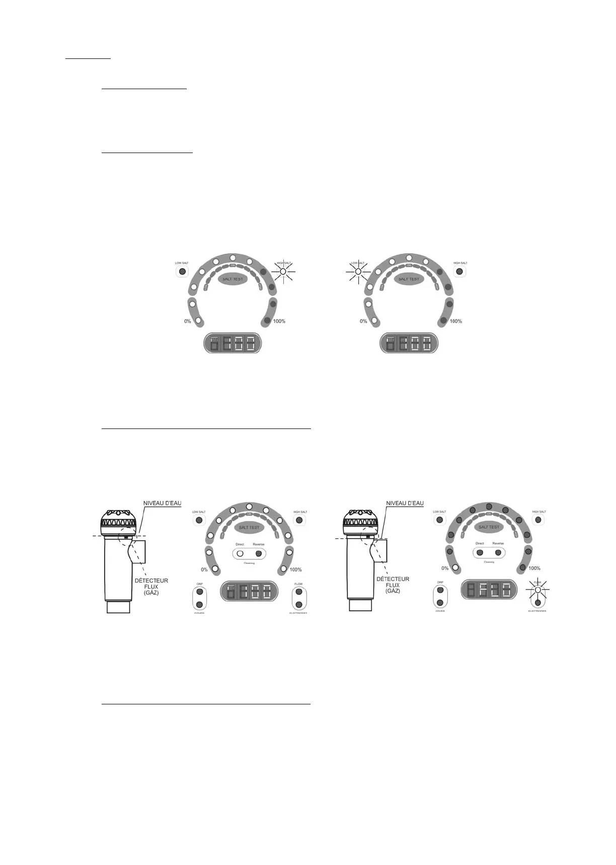 pas atteindre le niveau de sortie sélectionné. Le led « LOW SALT » [6] restera illuminé. Dans ce cas, déterminer le niveau de salinité