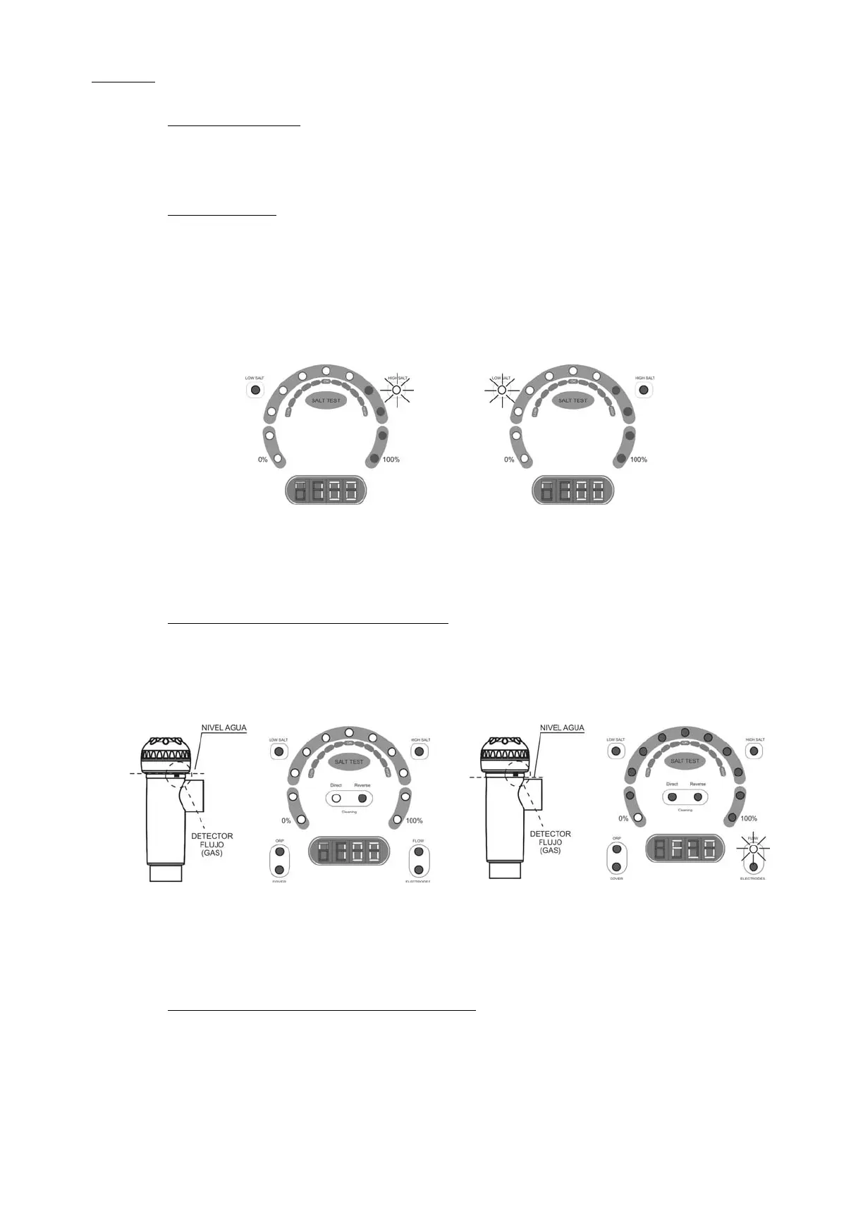 alcanzar el nivel de salida seleccionado. El led “LOW SALT” [6] permanecerá iluminado. En este caso, determinar el nivel salino