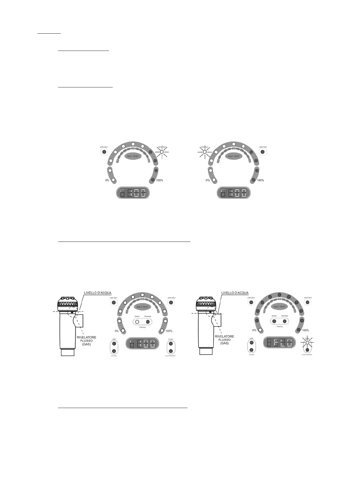 il livello d’uscita selezionato. L’indicatore “ LOW SALT “[6] rimarrà illuminato. In questo caso, determinare il livello salino dell’acqua ed