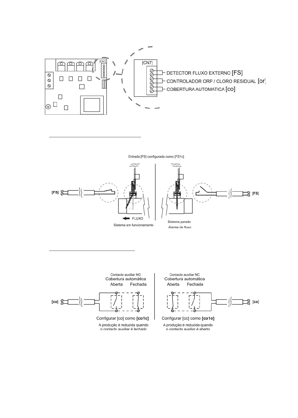 z [FS] CONTROLO DETECTOR FLUXO EXTERNO: entrada para contacto livre de potencial. Quando o contacto ligado a esta