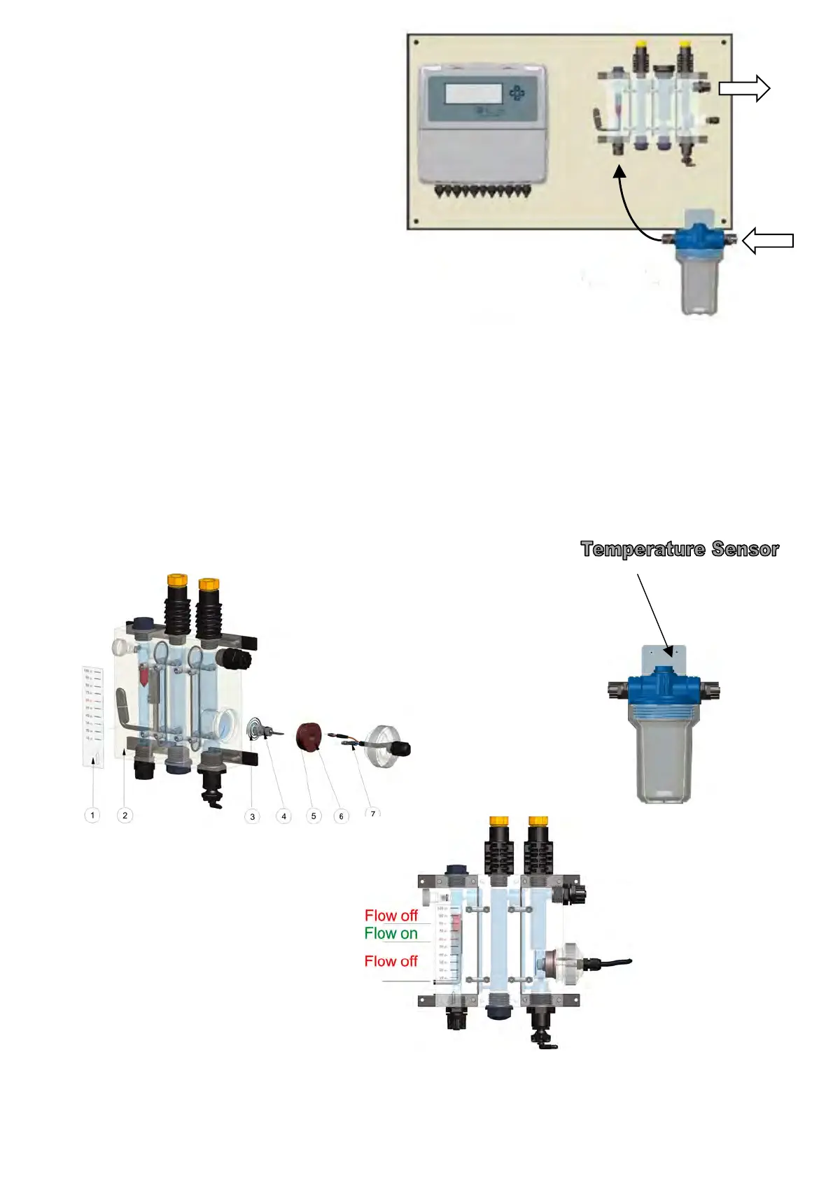 Conectar la admisión y la descarga y configurar 60 litros/hora con el regulador de flujo,