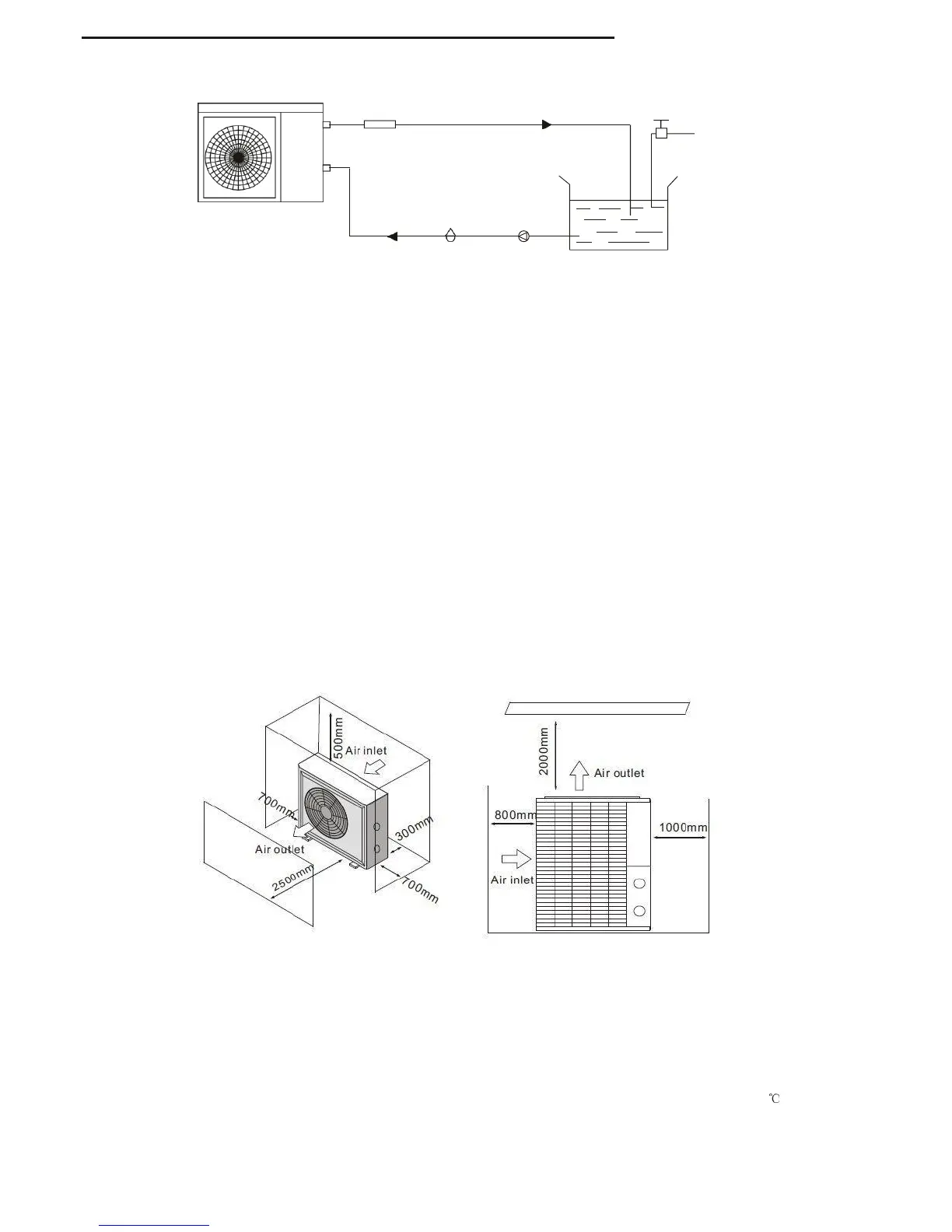 2.Make sure that the pump and the water-in pipe have been filled with water. 3.Close the valve and start the unit.