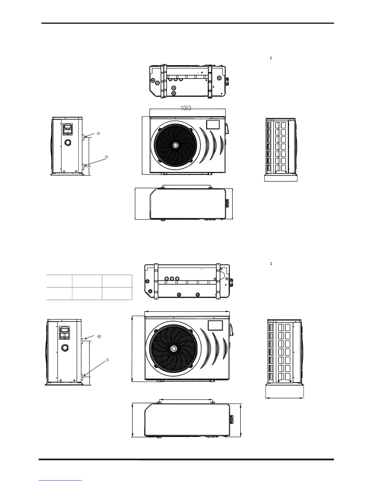 2.2 The dimensions for Swimming Pool Heat Pump Unit