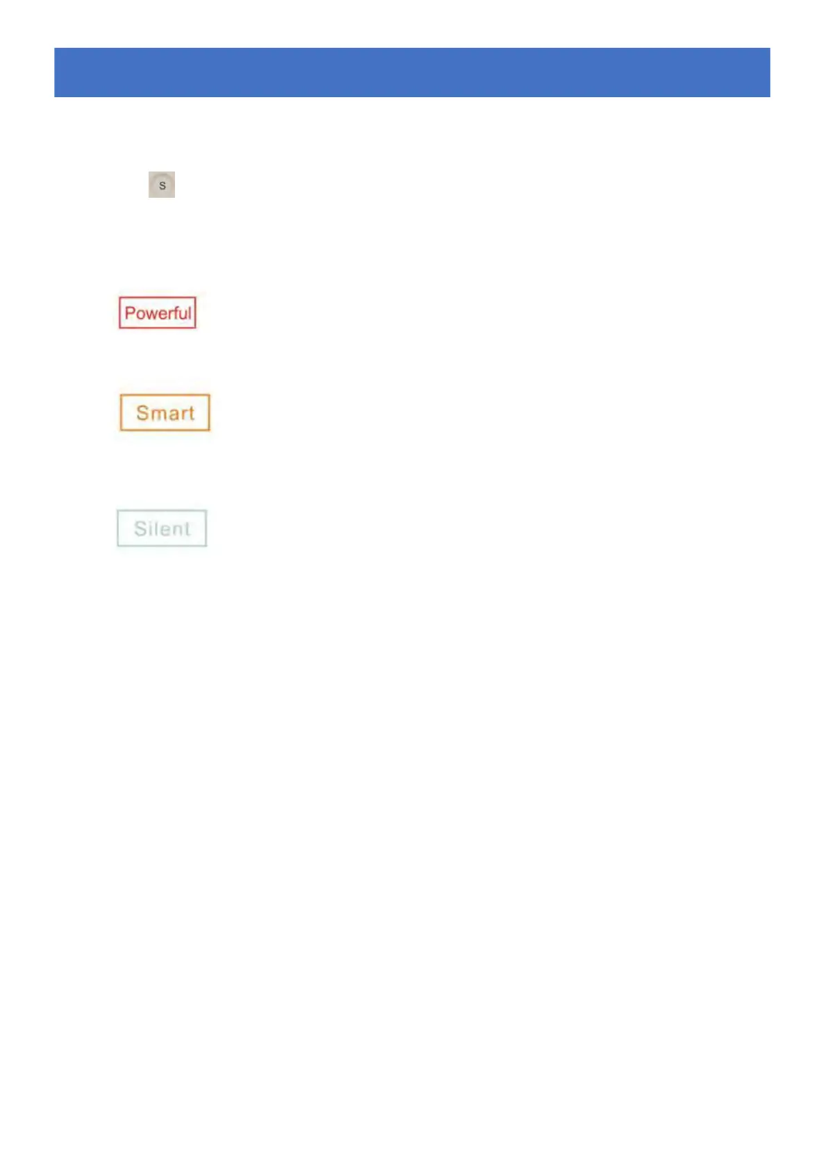 Drücken Sie , um drei Modi, wie unten beschrieben, auszuwählen: Silent / Smart / Powerful (Leise / Intelligent