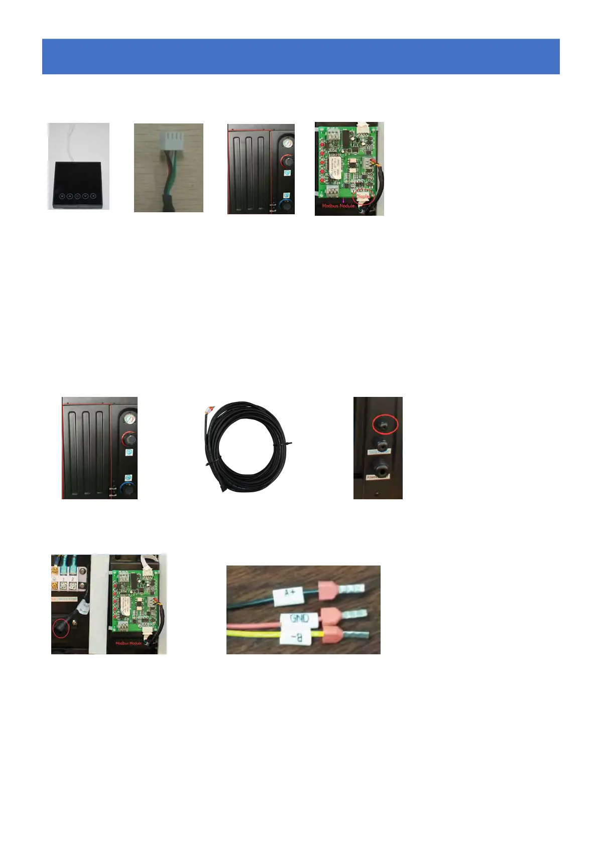 - Take the Modbus signal wire from the accessories (photo 6) and put the one end through the hole (Photo 7)