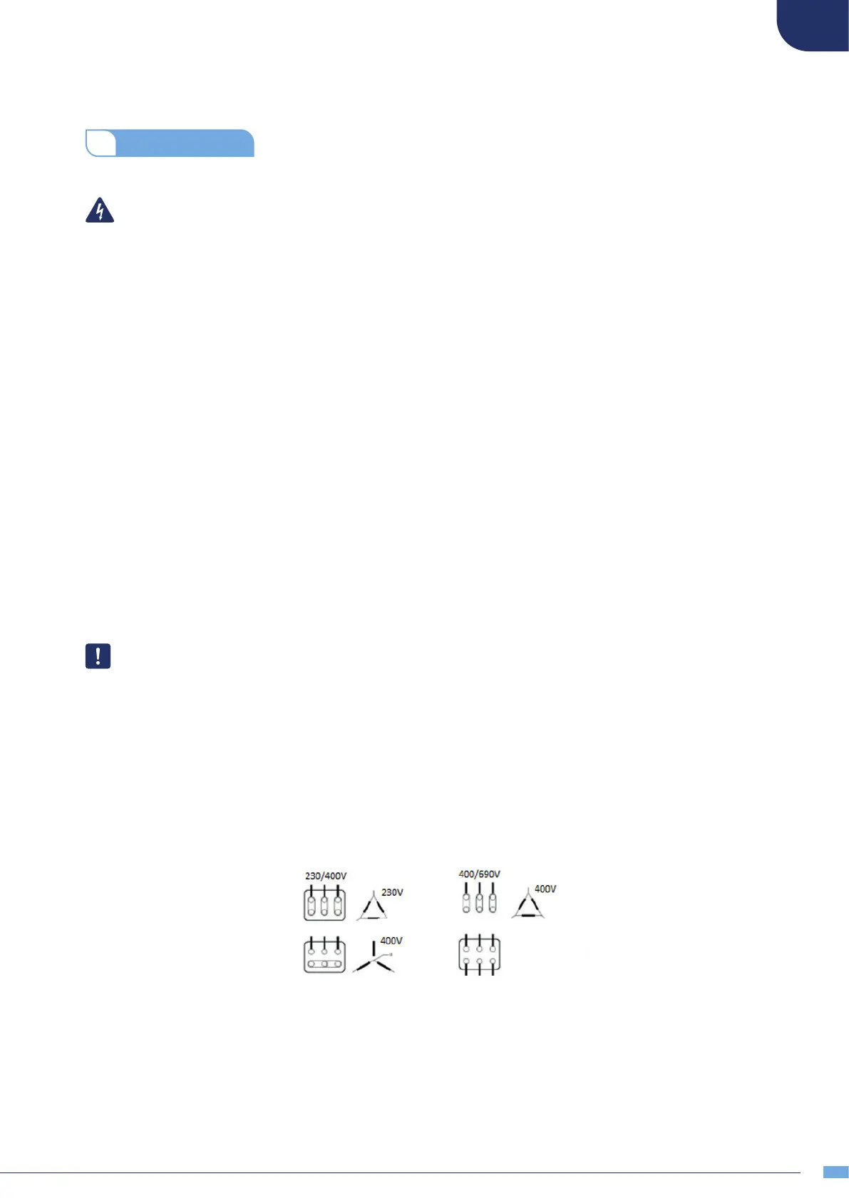 • Ligar a tensão mais baixa em ∆ e a tensão mais alta em Y para intervalos de tensão diferentes