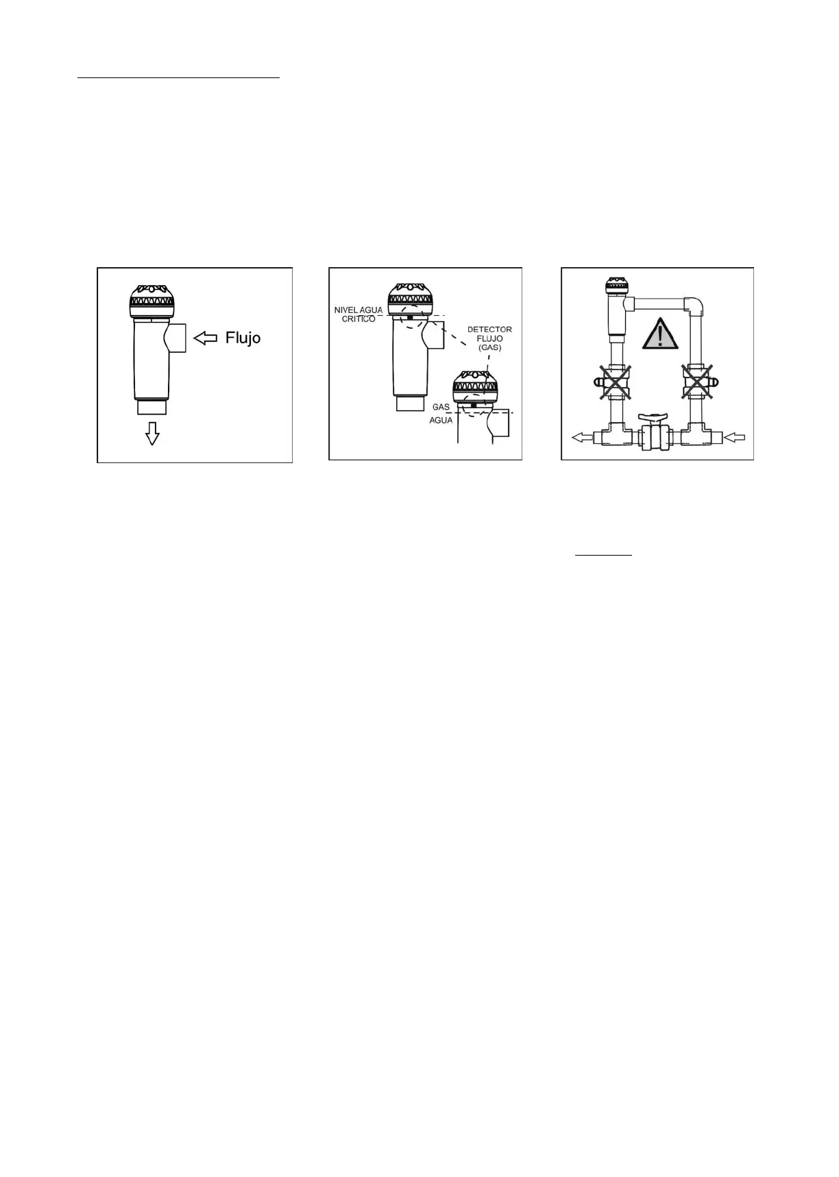situarse, preferentemente, de forma VERTICAL en un lugar de la tubería que pueda ser aislado del resto de la instalación mediante dos