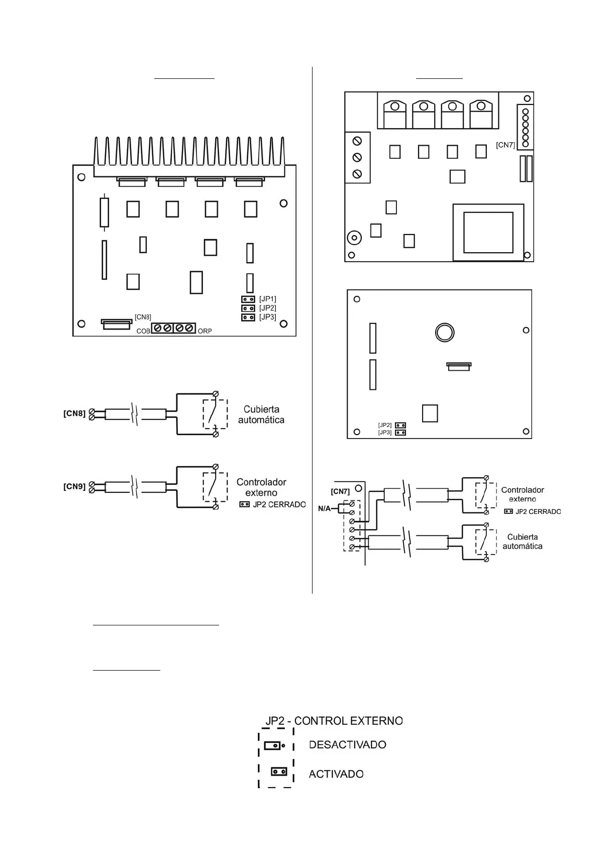 Control CUBIERTA AUTOMATICA: el sistema dispone de una entrada para contacto libre de tensión [COB]. Cuando el contacto