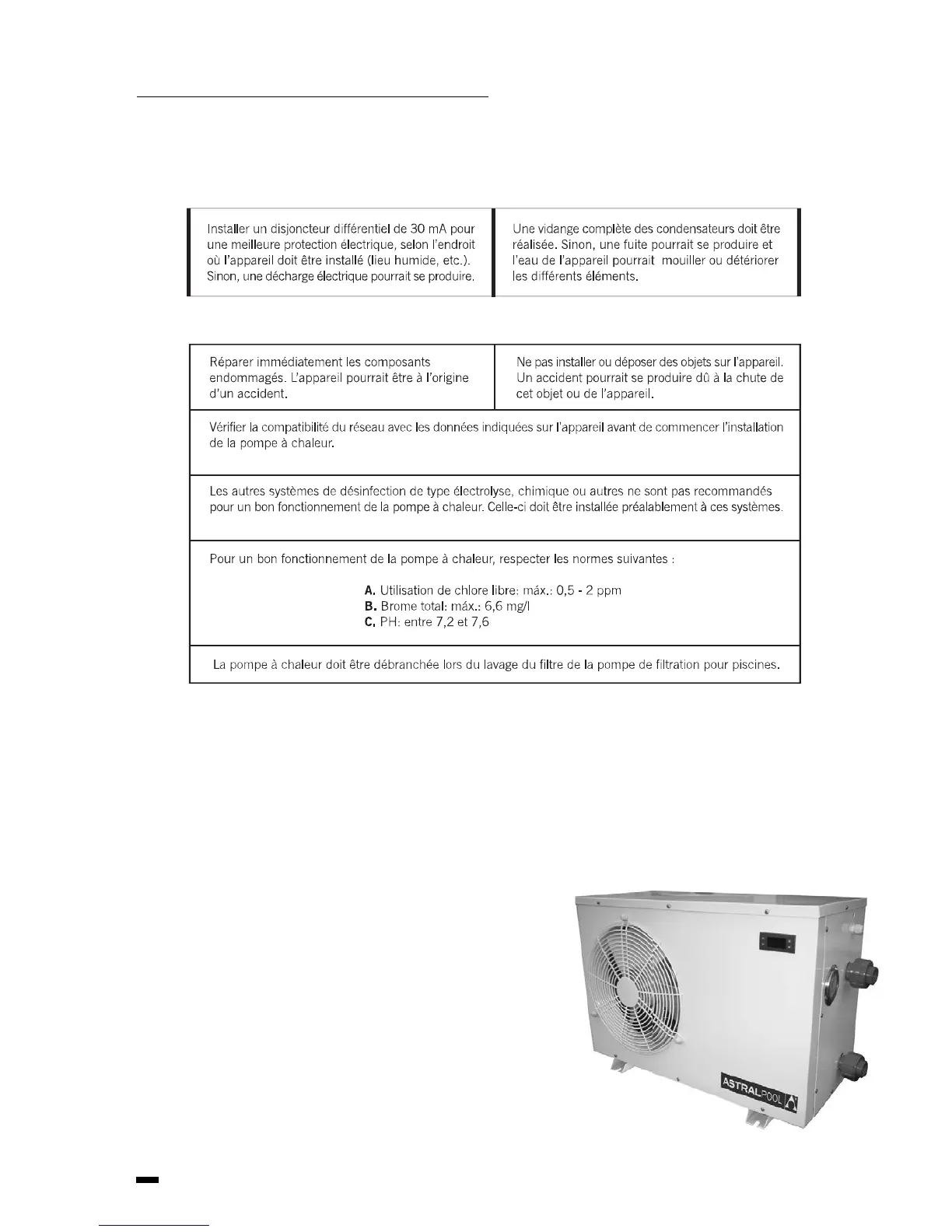 Astralpool BLM200 - B. Installation Conditions; 4. Description of the Heat Pump; A. Technical Characteristics