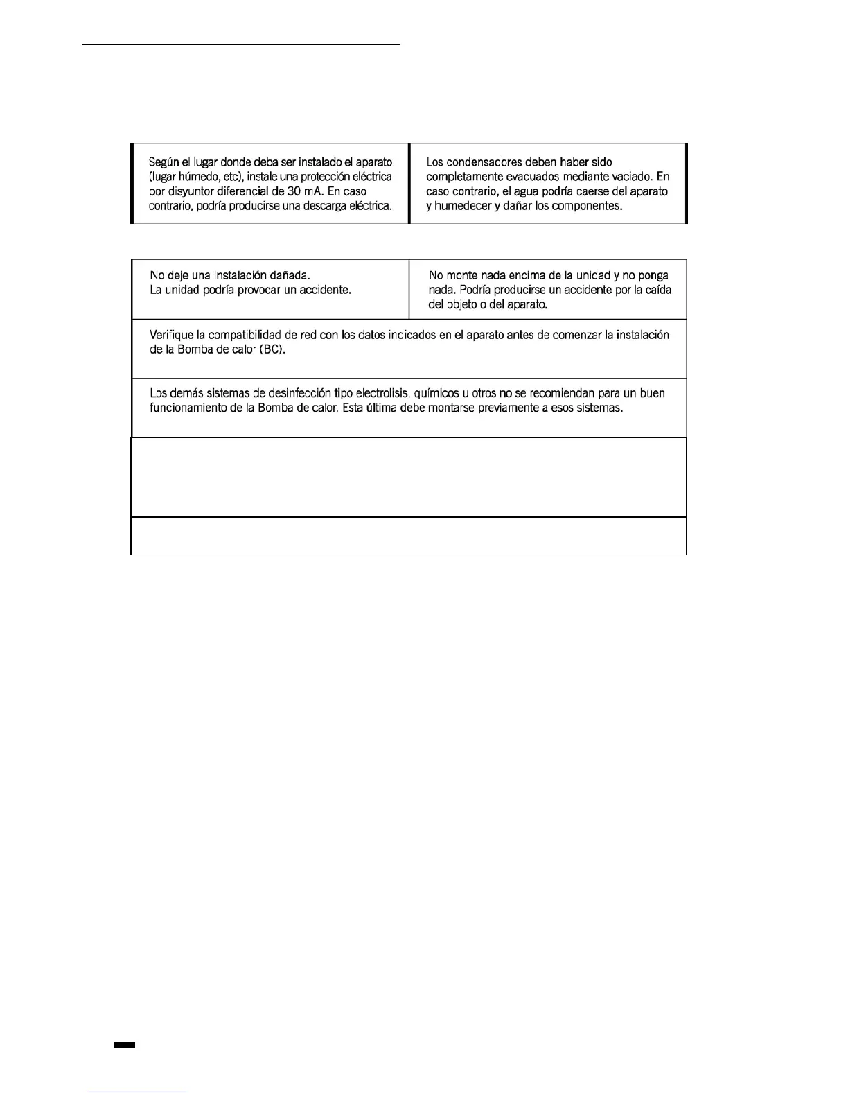 con experiencia para la instalación y reparación de bombas de calor. El usuario no debe instalar o reparar él mismo la bomba