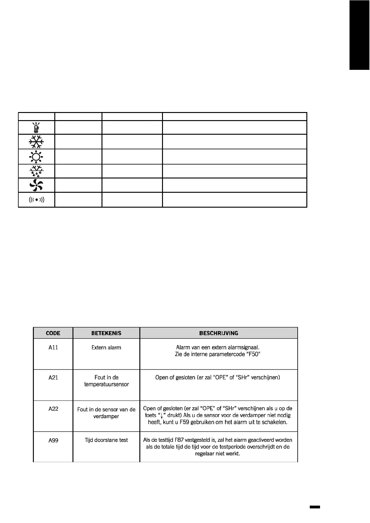 geschakeld is, terwijl “OPE” wil zeggen dat de temperatuursensor in werking is. In de alarmmodus zal afwisselend de temperatuur