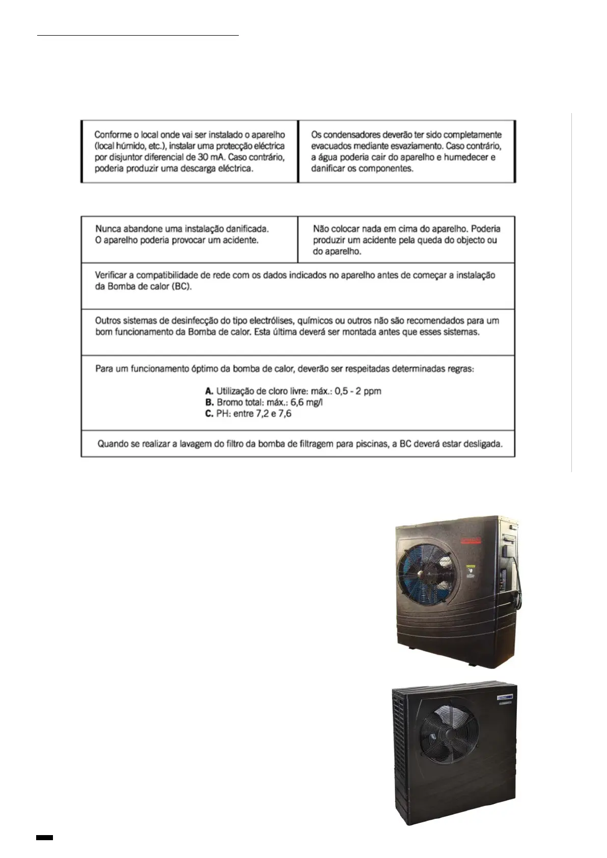 riência para a instalação e reparação de bombas de calor. Nem o utilizador nem qualquer outra pessoa deverá instalar ou conser