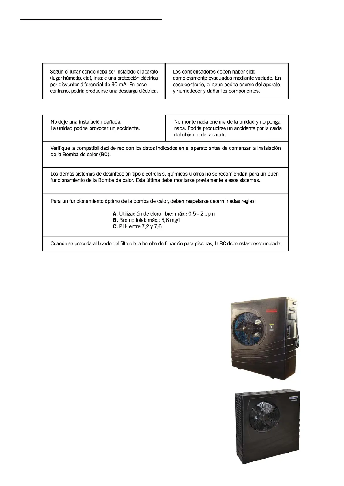 con experiencia para la instalación y reparación de bombas de calor. El usuario no debe instalar o reparar él mismo la bomba