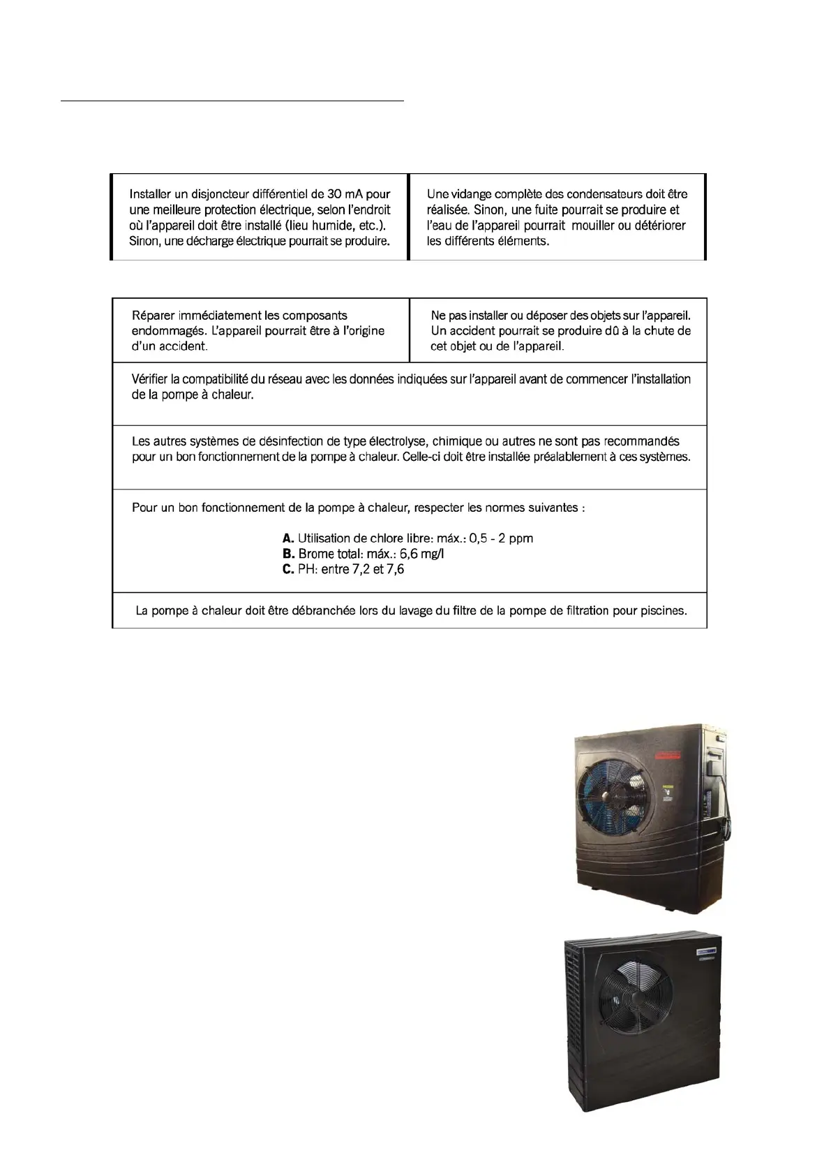 l’installation et la réparation de pompes à chaleur. L’utilisateur ne doit pas installer ou réparer lui-même la pompe à chaleur