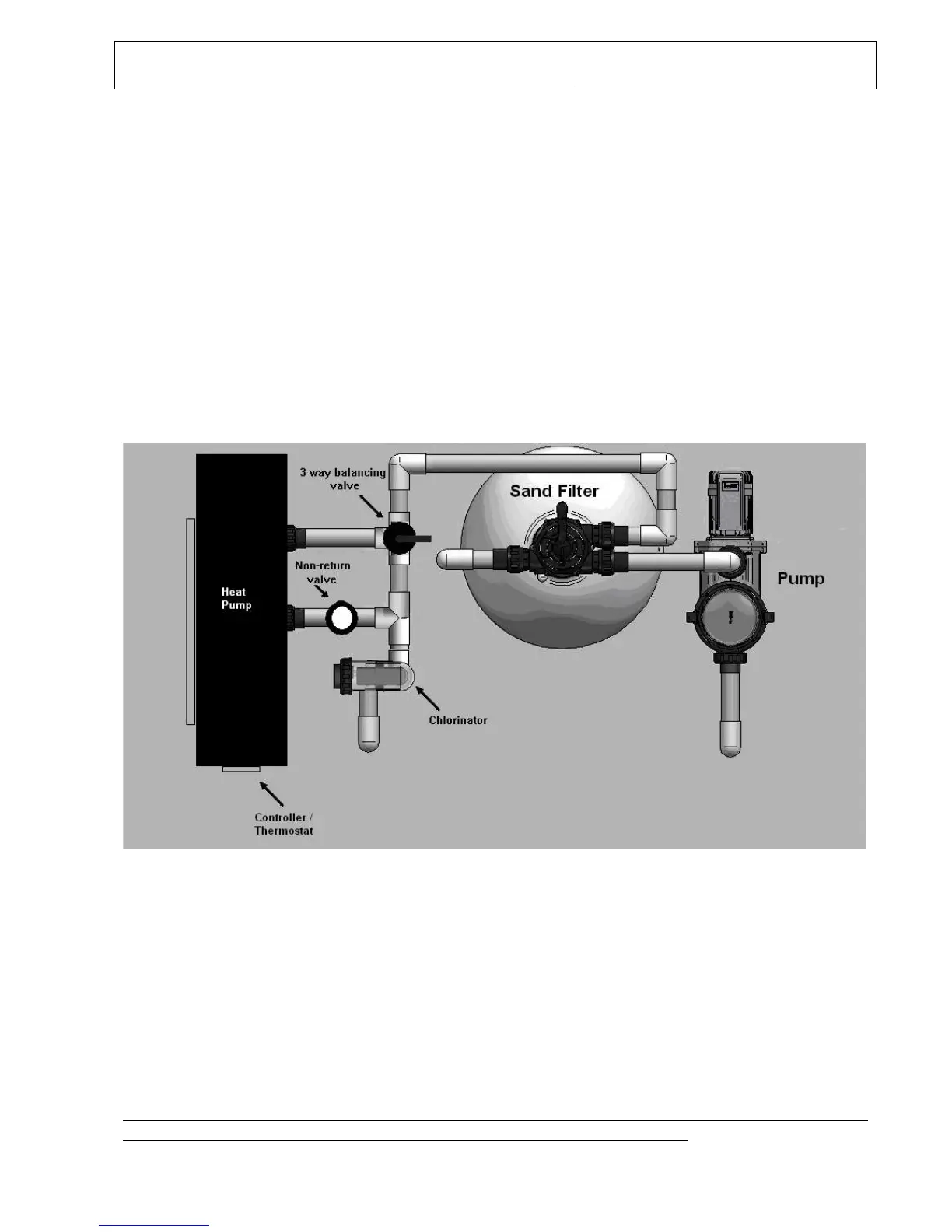 pump and filter. The water connections are located on the right hand side of the heater. The inlet and