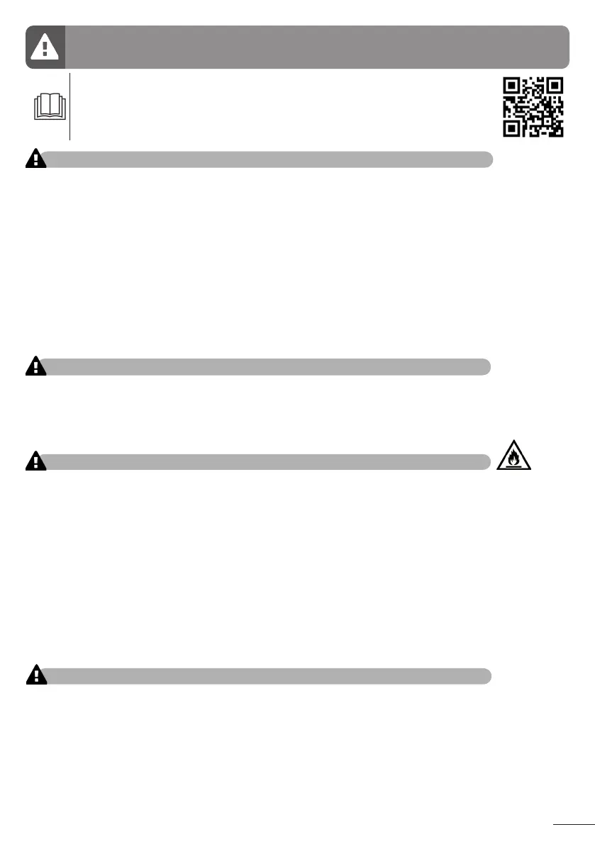 • Das Gerät muss in einem Raum ohne Funkenquelle im Dauerbetrieb gelagert werden (z. B. oene Flammen, Gasgerät im Betrieb