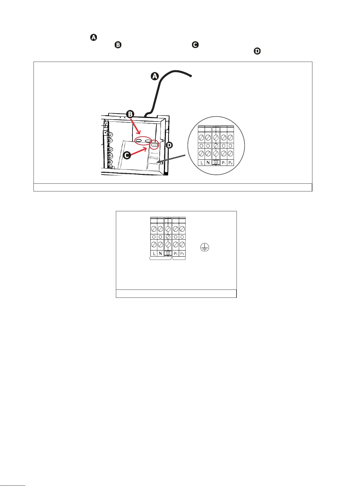• Insert the power supply cable ( ) into one of the cable gland ( ) on the rear part of the appliance.