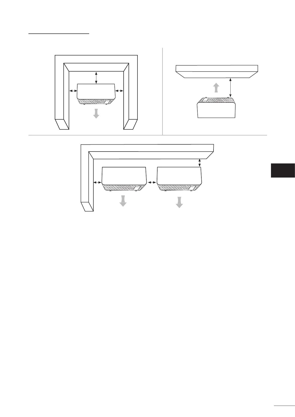 Quando si installa l’apparecchio, prevedere dello spazio libero intorno ad esso come mostrato nelle immagini soo. Più