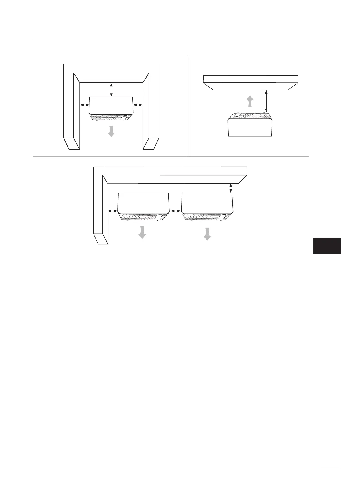 Bij de installae van het apparaat moet u vrije ruimte rond het apparaat voorzien, zoals te zien is op de onderstaande