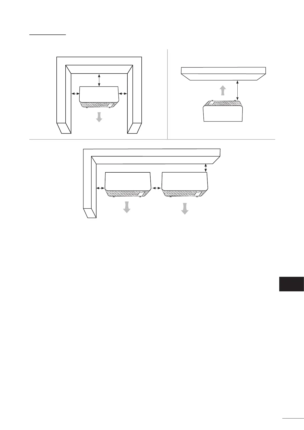 Se ll a vid installaon ha en fri yta runt enheten enligt vad som anges på bilderna nedan. Ju längre bort hindren