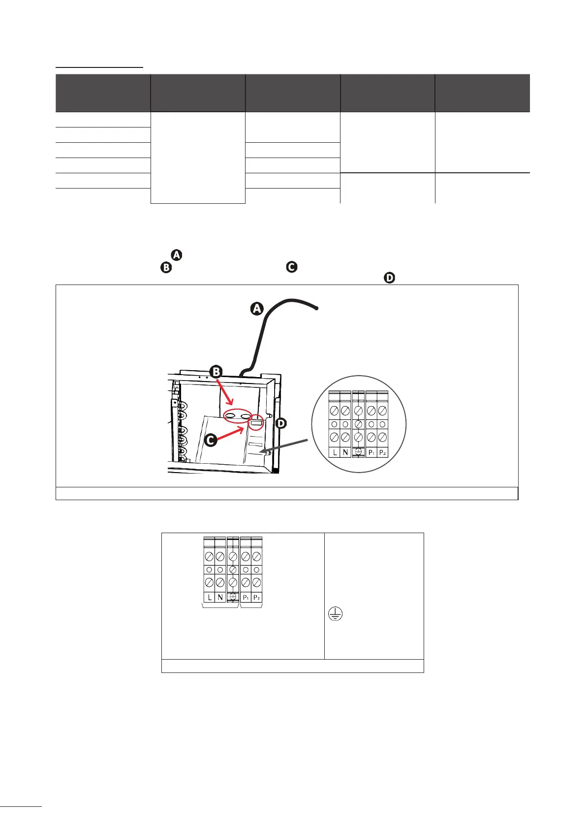 • Anslut matningskabeln ll kopplingsplinten inu enheten enligt nedan.
