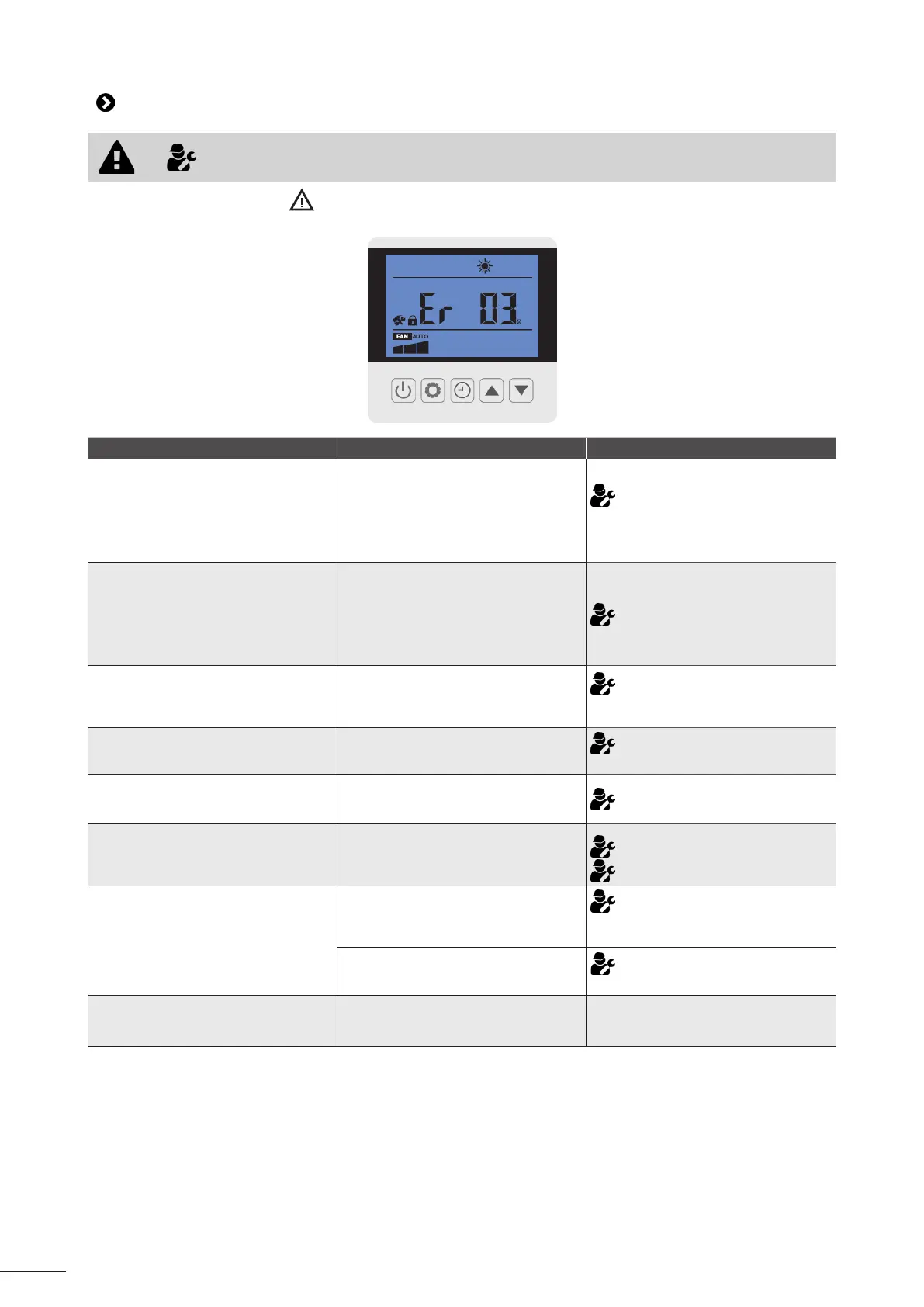Si une erreur se produit, l’icône apparaît et un code d’erreur remplace les indicaons de température, voir le