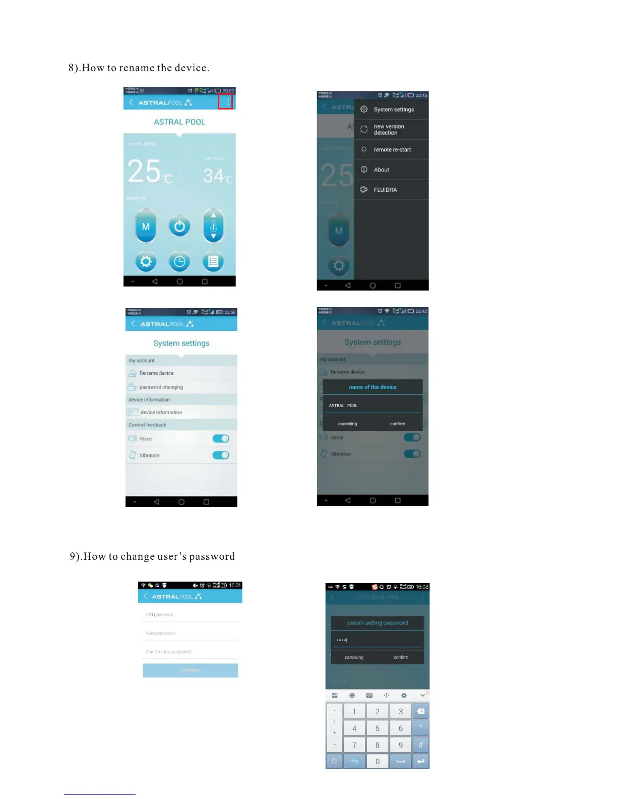 Astralpool EvoLine 20 - How to Rename the Device; How to Change Users Password