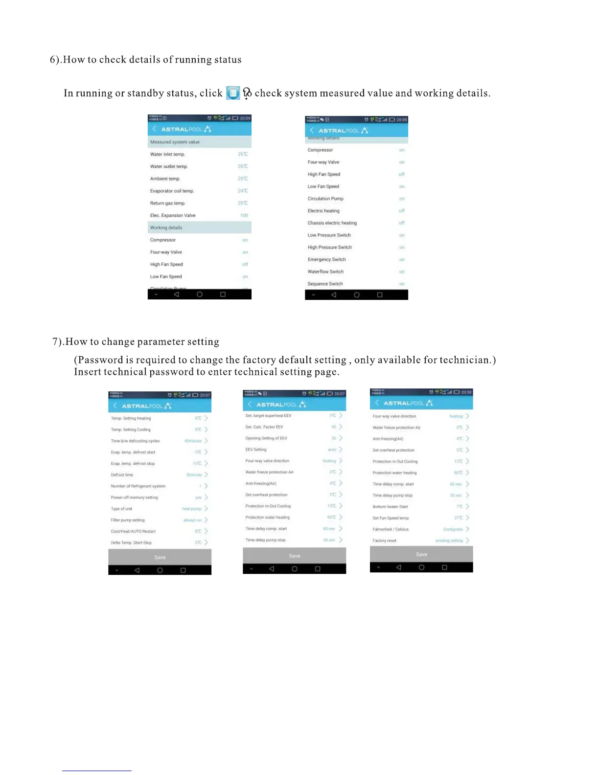 Astralpool EvoLine 25 - How to Check Details of Running Status; How to Change Parameter Setting