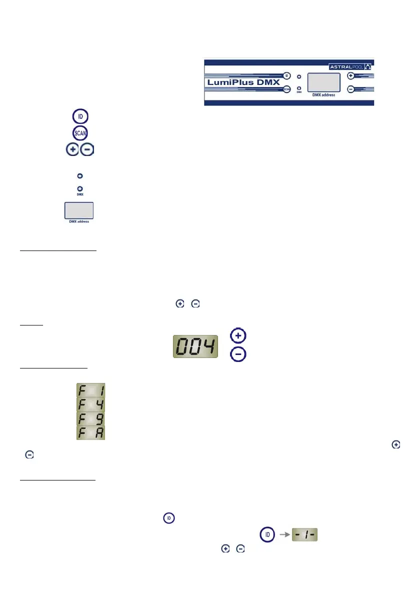 Para seleccionar la dirección DMX se utilizan los botones y que están al lado del display. Una vez seleccionada la dirección deseada,