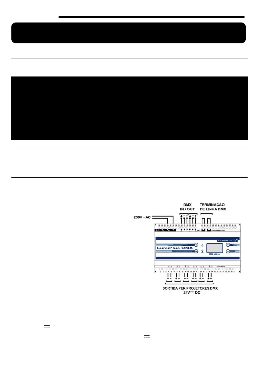 do sistema mediante o bus DMX e actua sobre os projectores que lhe estejam conectados. Enquanto não receber sinal DMX por parte