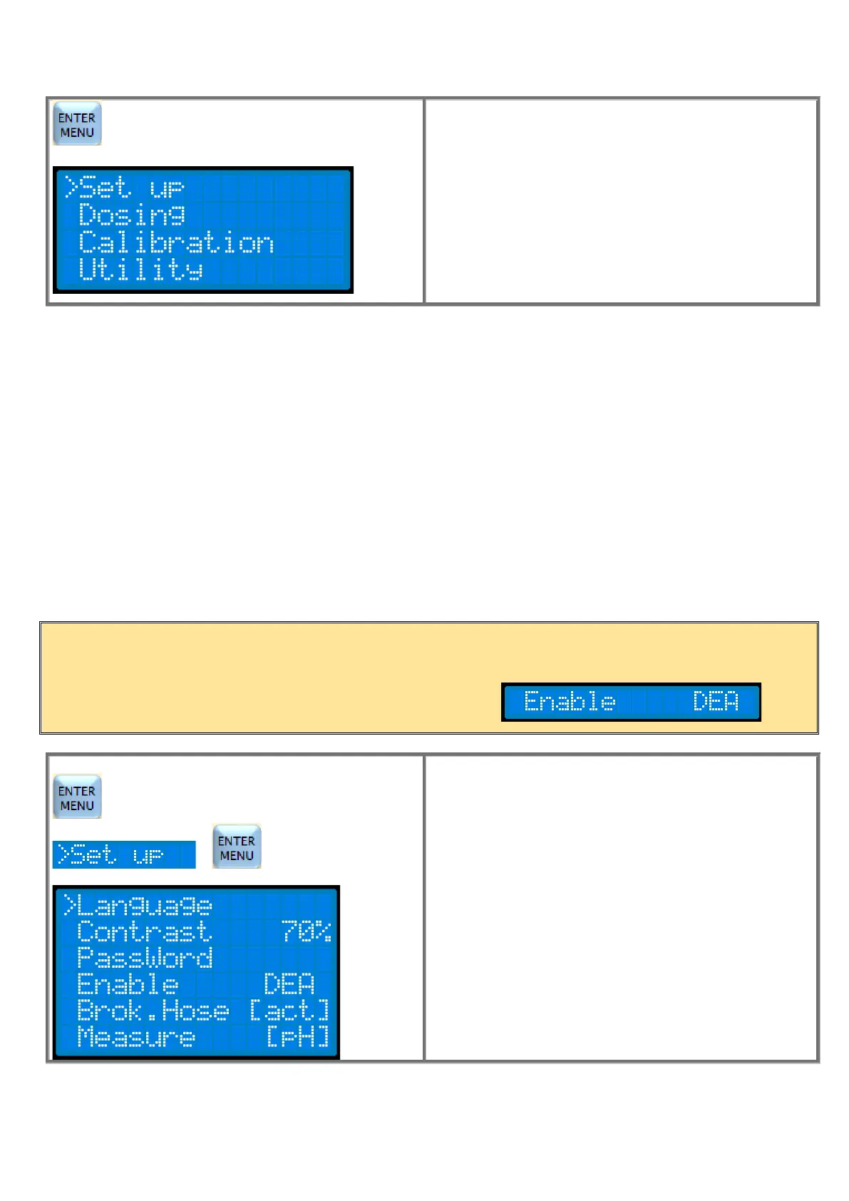 Na sua bomba não está presente o Ativar e, portanto, você não pode acessar o respectivo submenu e no