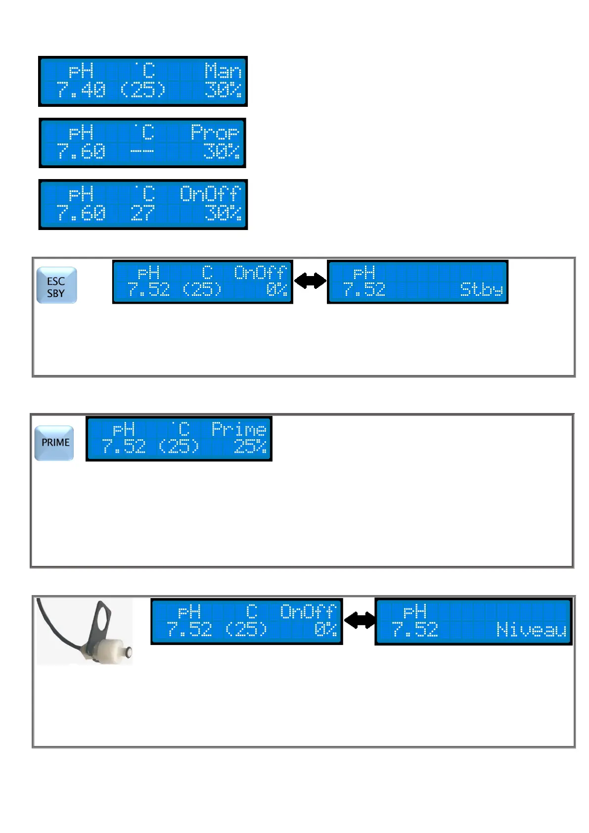 Une pression prolongée sur le bouton ESC / SBY pendant le fonctionnement met la pompe en mode stand by/Stop: