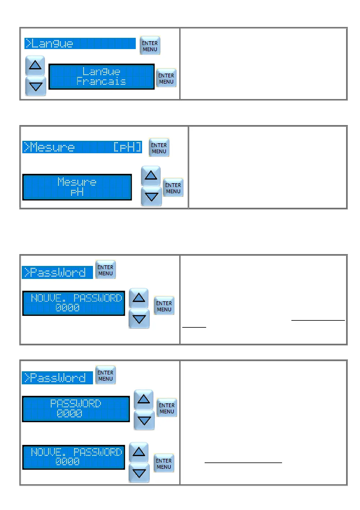 Le mot de passe (Password) protège la modification des menus Dosage et Utilitaires.