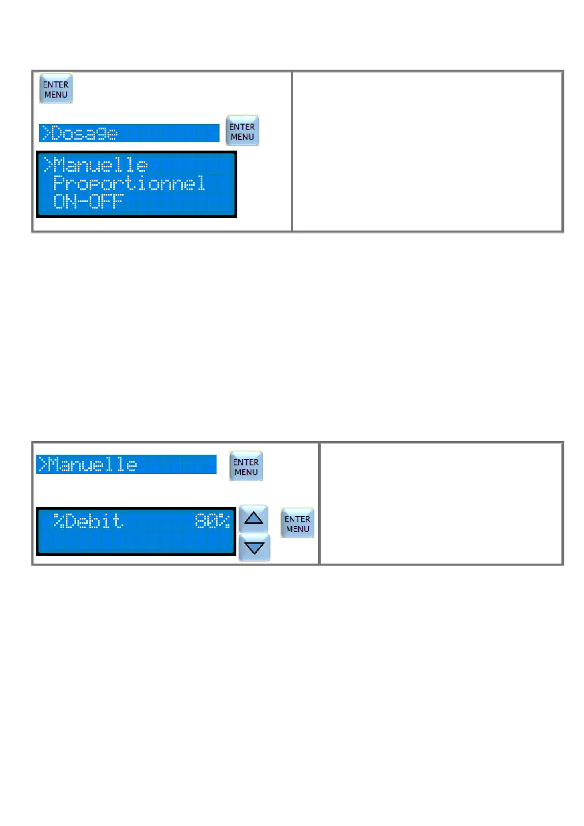 le type de dosage de la pompe: MANUEL, PROPORTIONNEL, ON-OFF