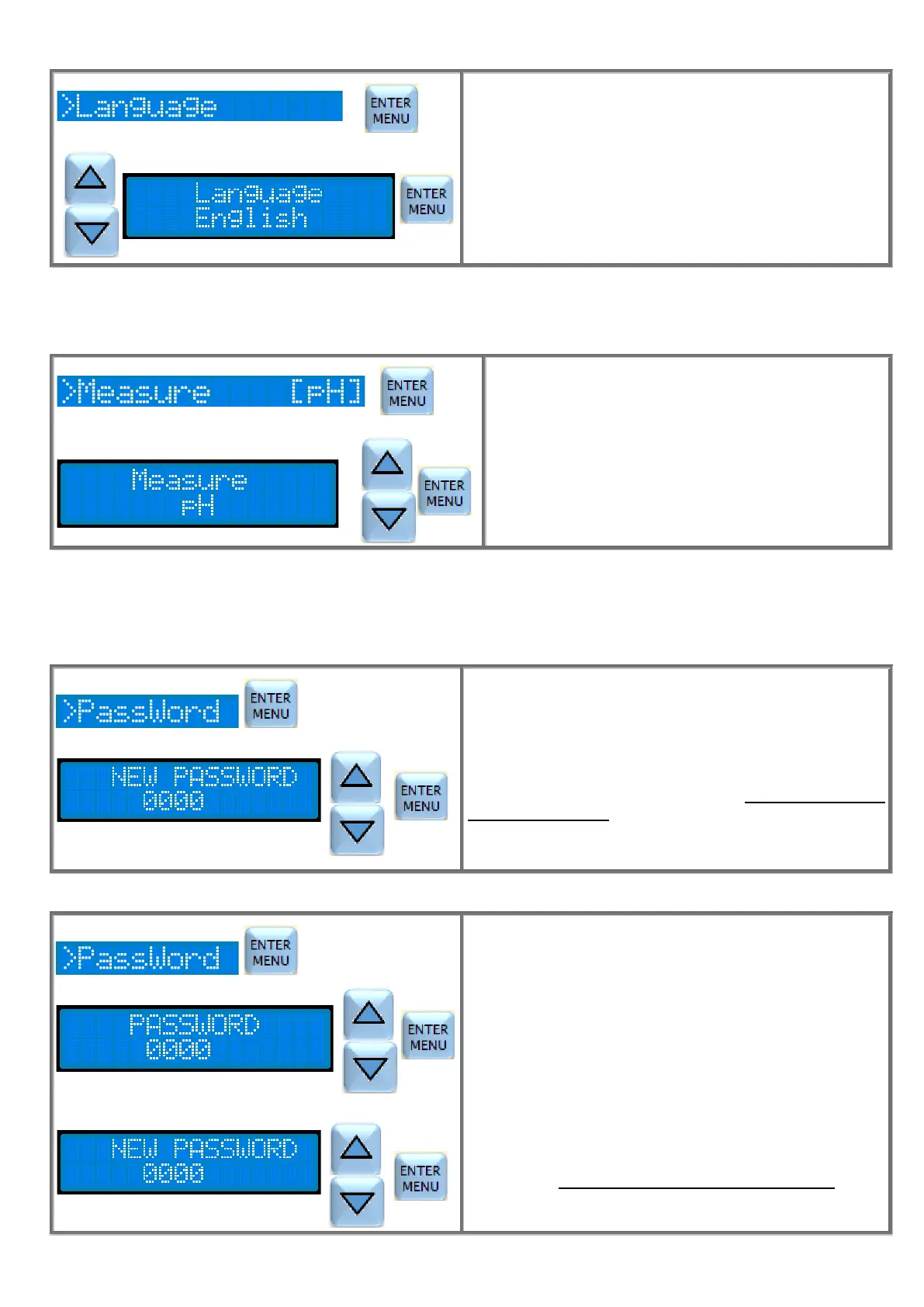 Use the ▼ ▲ keys to select pH or RX measure and press